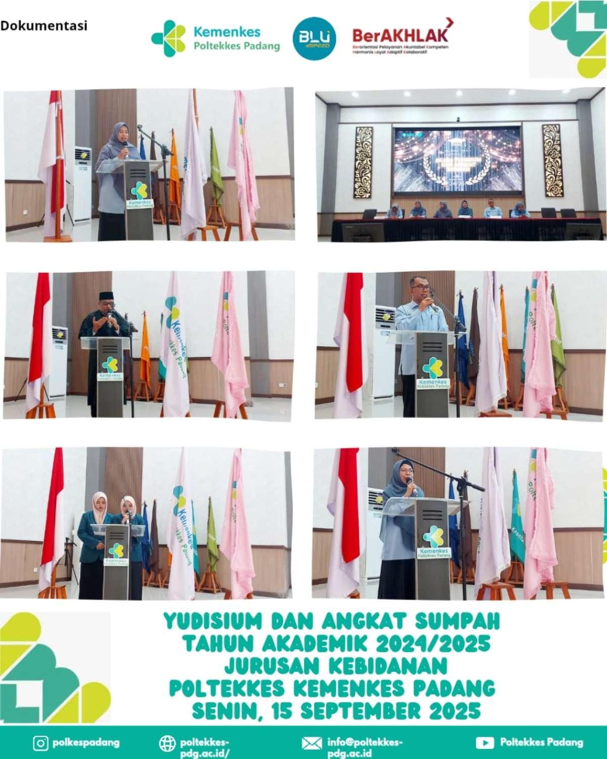 Kegiatan Yudisium Dan Sumpah Mahasiswa Tahun Akademik 2024/2025 Jurusan Kebidanan Poltekkes Kemenkes Padang Yang Di Laksanakan Di Auditorium Poltekkes Kemenkes Padang. Senin 15 September 2025