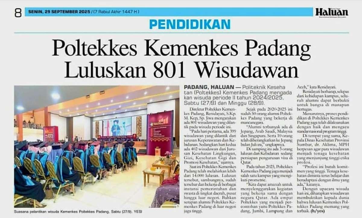 Sabtu & Minggu (27-28 September 2026) Poltekkes Kemenkes Padang melaksanakan Wisuda Periode II Tahun 2024/2025 sebanyak 801 orang