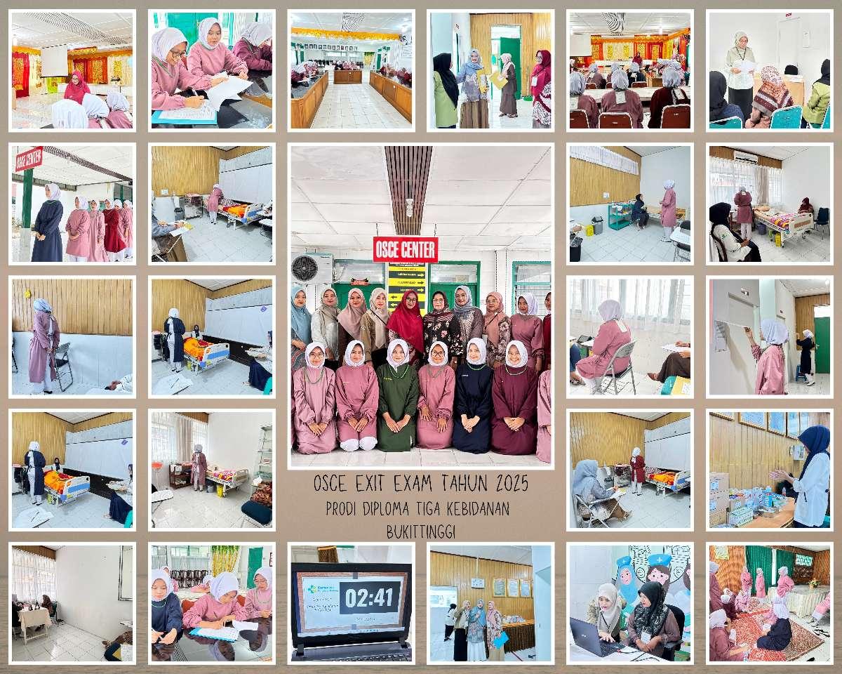 Prodi D3 Kebidanan Bukittinggi sukses menyelenggarakan Ujian OSCE Exit Exam pada tanggal 20-25 Agustus 2025 yang diikuti oleh 76 orang mahasiswa semester Akhir Tahun 2025. Ujian OSCE Exit Exam yang dilaksanakan bertujuan untuk menguji kompetensi/keterampilan klinis, komunikasi dan profesionalisme mahasiswa dalam menghadapi situasi simulasi yang mirip dengan kondisi nyata di lapangan. Ujian OSCE Exit Exam terdiri dari 6 stase aktif yang harus dilalui oleh mahasiswa dan setiap stase memiliki waktu yang ditentukan yaitu 10 menit. Setiap stase dirancang untuk menilai kemampuan mahasiswa dalam berbagai aspek klinis, mulai dari anamnesis, pemeriksaan fisik, perumusan diagnosis, hingga keterampilan dan pendokumentasian yang keseluruhannya dengan menunjukkan perilaku profesional. Hasil OSCE ini menjadi salah satu syarat kelulusan dan untuk memastikan mahasiswa siap praktik di masyarakat.