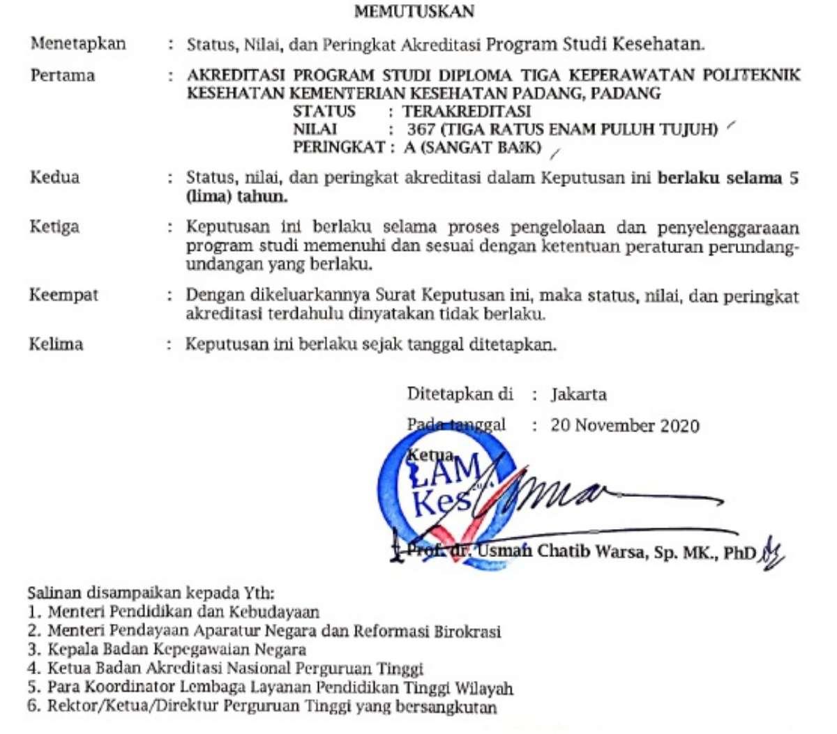 Akreditasi Prodi D3 Keperawatan Padang "A"
